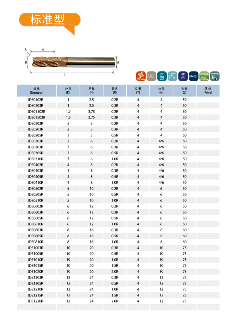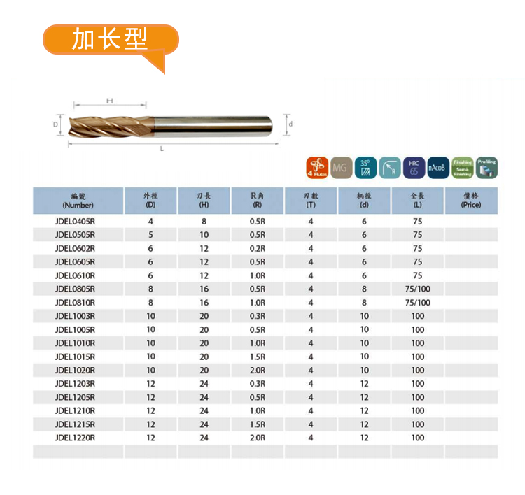 臺灣G650高速高硬圓鼻銑刀